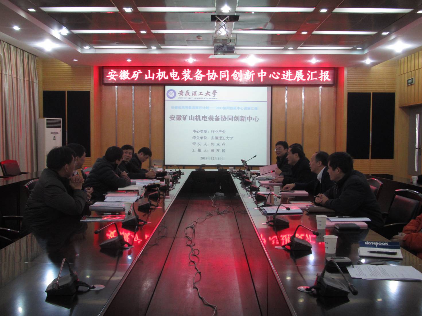 12月19日上午,安徽矿山机电装备协同创新中心进展情况专家检查验收会在校本部图书馆北会议室举行。来自合肥工大高科信息技术有限责任公司、机械工业第一设计研究院以及淮南市科技局、协同单位凯盛重工有限公司等单位专家,对项目进展情况进行了检查验收。校长郭永存出席会议。