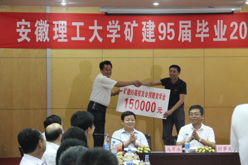 教师代表宗琦、矿建95届校友会会长陈会园先后发言。校友代表们向学院捐赠学生奖学金15万元。