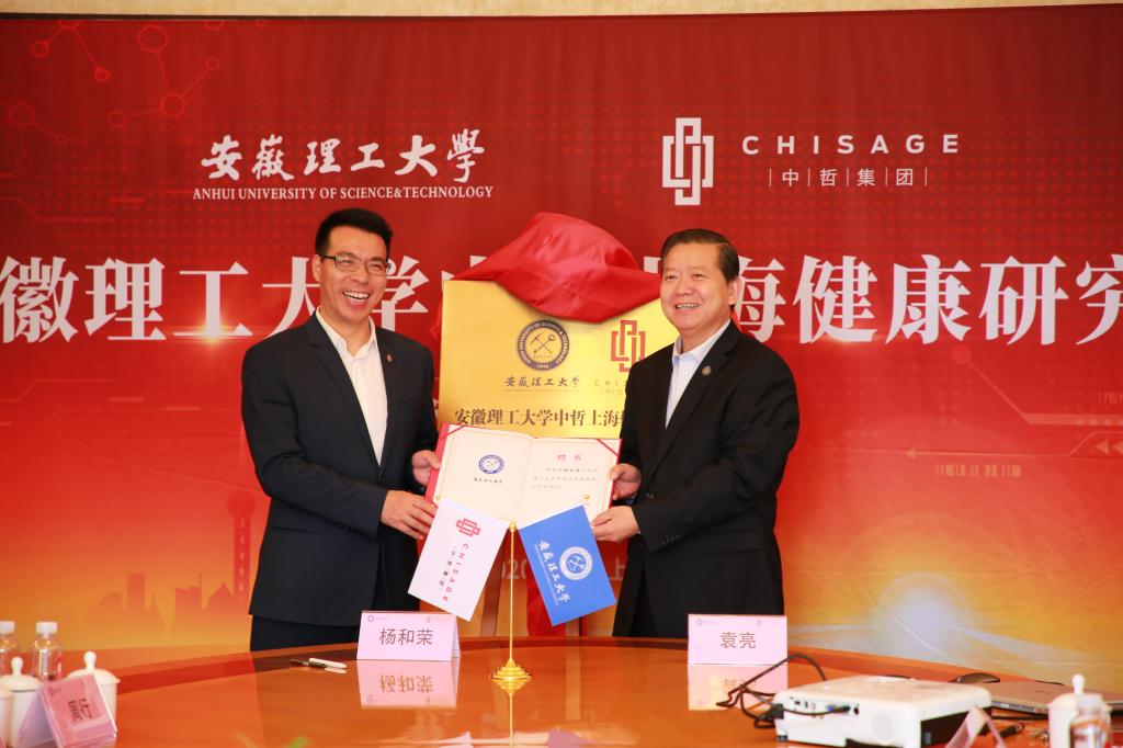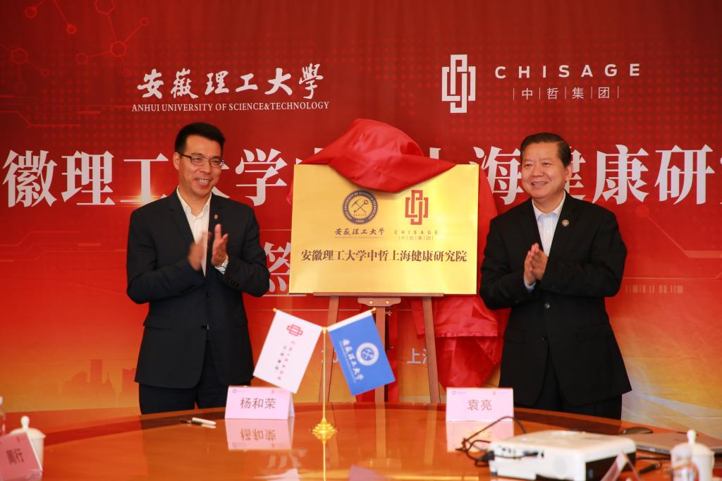 4月30日上午,上海科学会堂阳光灿烂,草木葱茏,安徽理工大学中哲上海健康研究院签约暨揭牌仪式在这里举行。校党委副书记、校长袁亮院士,中哲控股集团董事长、我校矿井建设专业78级校友杨和荣代表校企双方签约、揭牌。校党委常委、副校长郑明东,中哲控股集团副总裁徐红霞、周红绩、陈斌出席签约暨揭牌仪式。