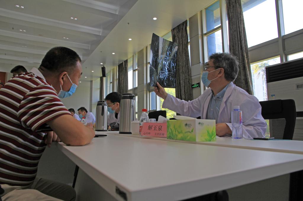 医疗专家为工人做体格检查