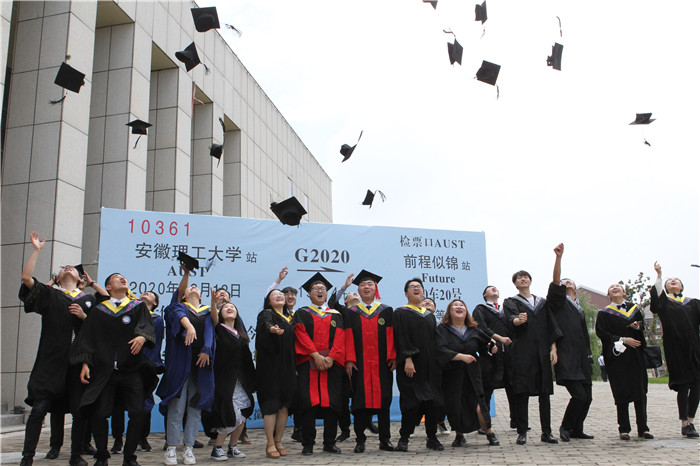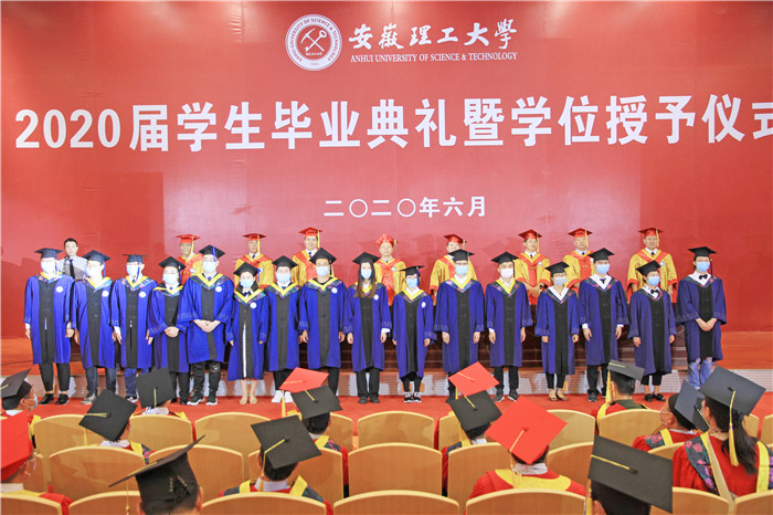 校党委书记郭永存,党委副书记、校长袁亮,党委副书记虞宝桃,副校长孟祥瑞,党委常委、副校长郑明东、宫能平、董雨,党委常委、纪委书记周旭出席毕业典礼暨学位授予仪式。返校复学的2020届毕业生及毕业生亲友团,机关部门主要负责人,各学院主要领导和导师团成员,教师代表,非毕业班学生代表等现场参加了毕业典礼暨学位授予仪式。因疫情未能返校的毕业生于云端参会。典礼由董雨主持。