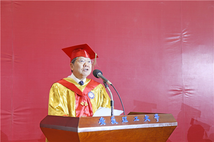 在热烈的掌声中,袁亮院士作了热情洋溢的讲话。他代表郭永存书记和全校教职员工,向在场和线上的同学们,致以热烈祝贺和良好祝愿!向关爱同学们的父母、亲朋致以崇高敬意!向为同学们成长,付出心血汗水的老师们致以衷心感谢!