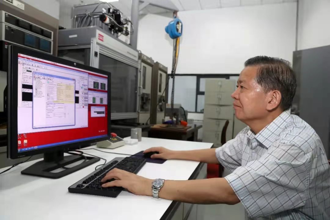 袁亮院士在微纳米CT实验室开展岩芯扫描三维重构实验。