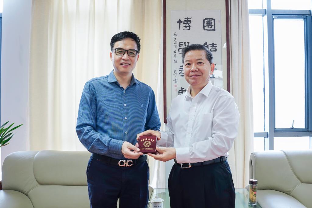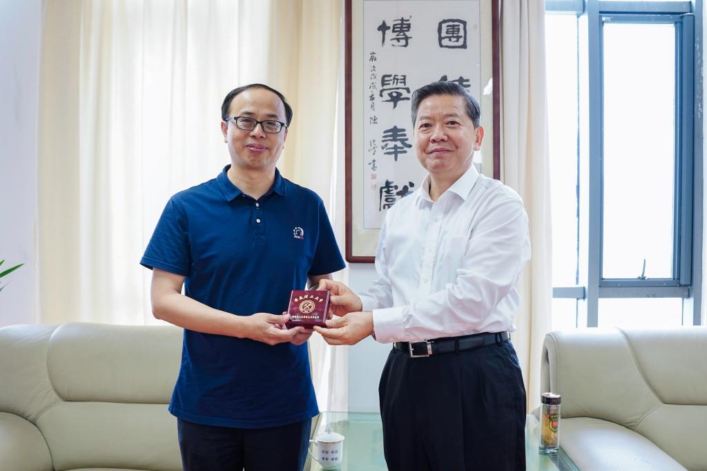 叶建设和赵启柱两位校友对母校热情接待表示衷心感谢,为母校近年来跨越式发展取得的成就表示自豪,并感恩母校的教育培养。他们还分别介绍了各自的发展历程、业务范围,期待进一步加强与母校的交流合作,为学校高质量发展赋能助力。