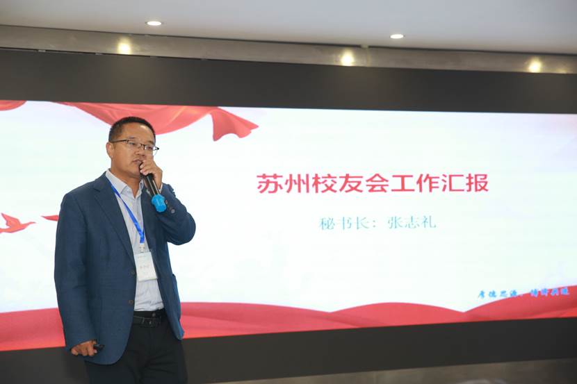 苏州校友会秘书长张志礼作工作汇报。他报告了本次会议的筹备情况,报告了苏州校友会过去的主要工作。他表示,苏州校友会将初心不改,继续发挥桥梁纽带作用,与母校和广大在苏校友一起向未来、奋进新时代。