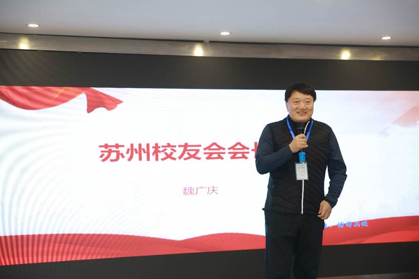 苏州校友会会长、苏州南智传感科技有限公司总经理魏广庆致辞。他首先代表苏州校友会向与会的母校领导、各地校友、来宾们表示热烈欢迎和衷心感谢。他说苏州校友会一直致力于加强校友间的联系与合作,为广大校友提供一个交流与互动的平台。经过不懈努力,校友会的工作基础更加坚固,校友文化更加繁荣,校友服务更加丰富。大健康行业正处于快速发展阶段,苏州校友会大健康行业分会成立不仅响应了行业发展的需求,更为校友间深度交流与合作搭建了平台。在下一阶段,苏州校友会将继续加强组织建设,增强校友凝聚力、提升校友影响力、发挥校友创造力,全力为校友和母校做好服务,搭建更多校友与母校的共融发展平台。