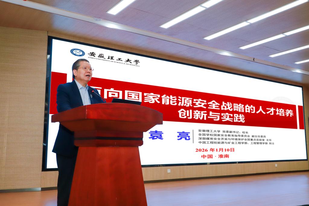 1月10日上午,全国学校国家安全教育指导委员会2025年度工作总结暨2026年度工作部署会在我校党委办公楼一楼报告厅举行。开幕式上,北京师范大学党委书记程建平,安徽省委教育工委副书记范奇,淮南市委副书记时志远,校党委副书记、校长袁亮院士分别致辞。安徽省委教育工委领导,教指委委员及秘书处专家,地方教指委、教育部门、高校代表,以及校领导王先江、张平松、徐良骥和学校相关部门、学院负责人等120余人参会。全国学校国家安全教育指导委员会秘书长刘凯主持开幕式。