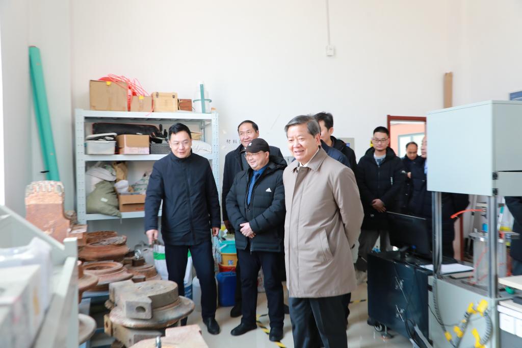 会前,袁亮一行在山东大学兴隆山校区参观了深部岩体工程灾害防控实验室,详细了解地下工程灾害防控与安全建造实验室、环境岩土工程材料实验室、煤岩气体解吸-扩散-渗流实验室、多场多相煤岩力学实验室等的运行情况。