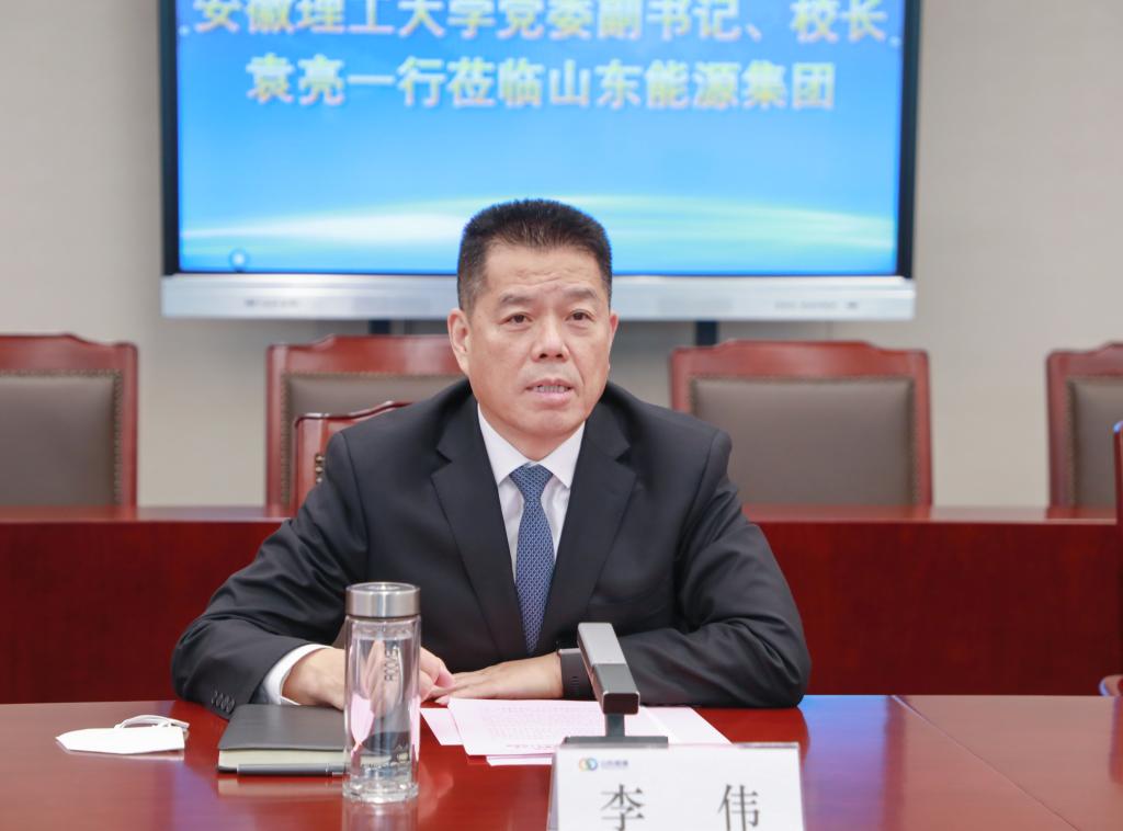 李伟对袁亮院士一行的到来表示热烈欢迎,向学校对山能集团发展给予的支持表示衷心感谢,他简要介绍了山能集团发展历史、改组建设情况和六大主要业务板块,并介绍了集团近年来服务国家、服务山东高质量发展的具体举措。李伟表示,安徽理工大学办学历史悠久、师资雄厚、科研成果丰硕,在能源、安全、爆破、职业安全健康等领域独具特色,拥有一批国家、省部级科研平台,在行业内拥有重要影响力,长期以来,山东能源集团与安徽理工大学建立了良好的合作关系,双方在深部矿井动力灾害、高瓦斯矿井治理,实现煤炭安全高效开采等领域具有良好的互补优势,合作带来新机遇、创新带来新发展,此次签署战略合作协议,既是深入学习贯彻党的二十大精神、推进产学研融合发展的实际行动,也是校企深度融合发展的战略选择,希望双方继续发挥各自特长和资源优势,在重大项目开发、高层次人才培育、科技合作交流及成果转化等方面创造新的成绩,提高科技成果转化和产业化水平,开启校企融合、产教融合发展新篇章。