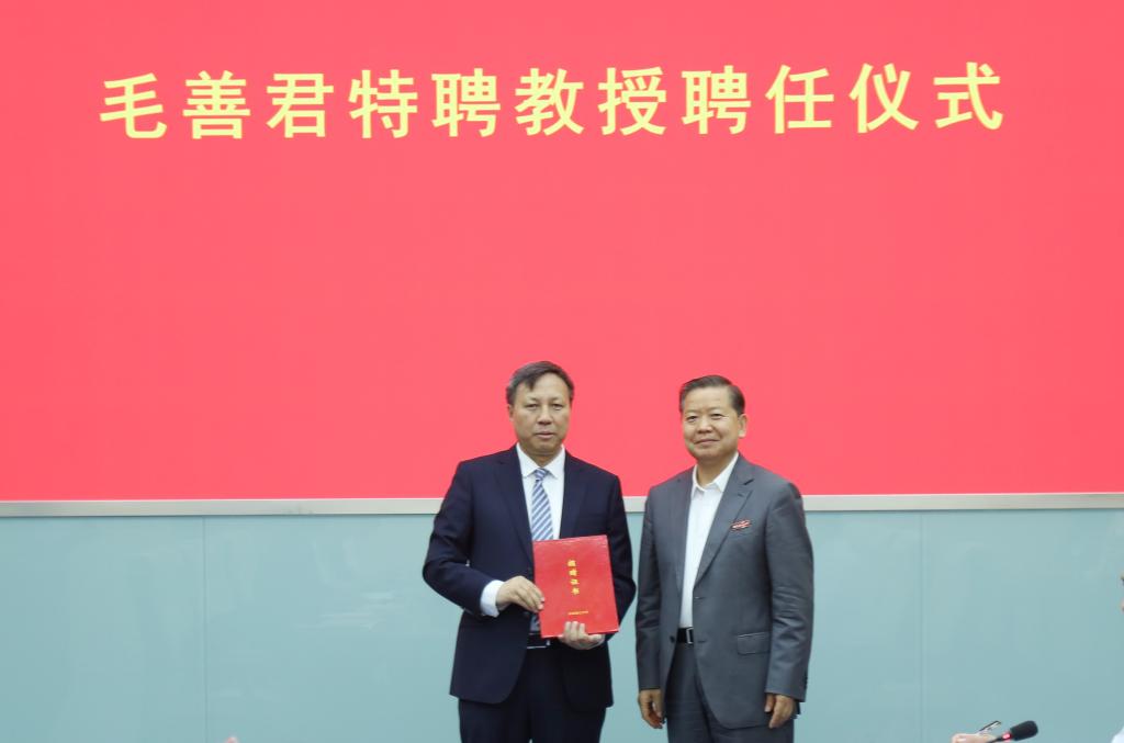 5月7日下午,学校在国家重点实验室一号会议室举行聘任仪式,聘请北京大学地球与空间科学学院教授、博士生导师,北京龙软科技股份有限公司董事长毛善君为我校特聘教授,北京龙软科技股份有限公司捐赠设立“龙软科技”测绘奖学金。校党委副书记、校长袁亮院士出席仪式,并为毛善君颁发聘书和捐赠证书。仪式由校党委常委、副校长张平松主持。